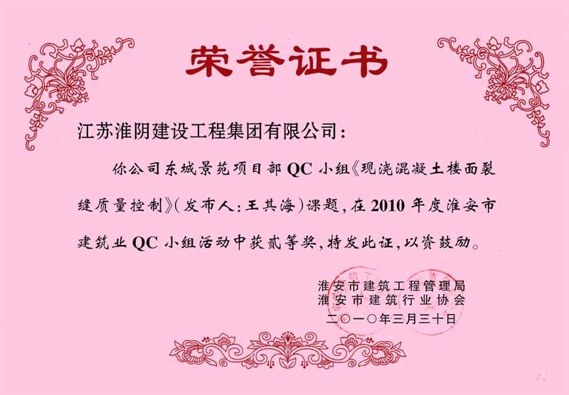 2010年市QC(二等獎)現(xiàn)澆混凝土樓面裂縫質(zhì)量控制(東城景苑-王其海)